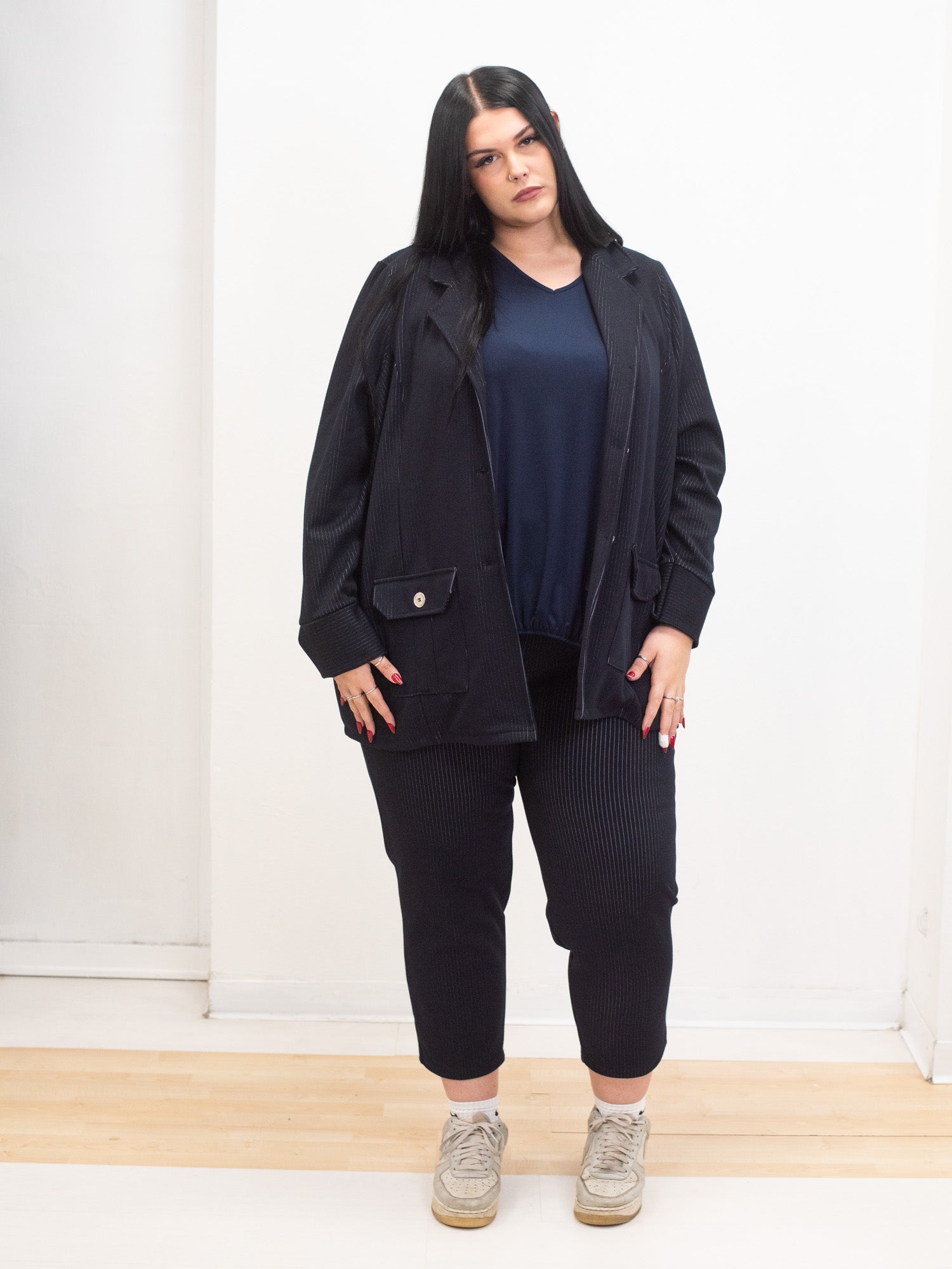 Blue pinstriped coat