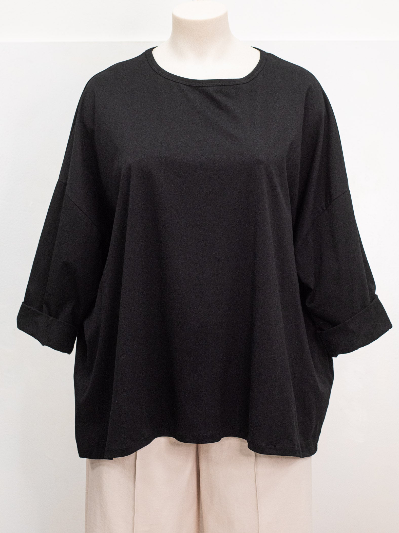 Oversized cotton T-shirt with even bottom