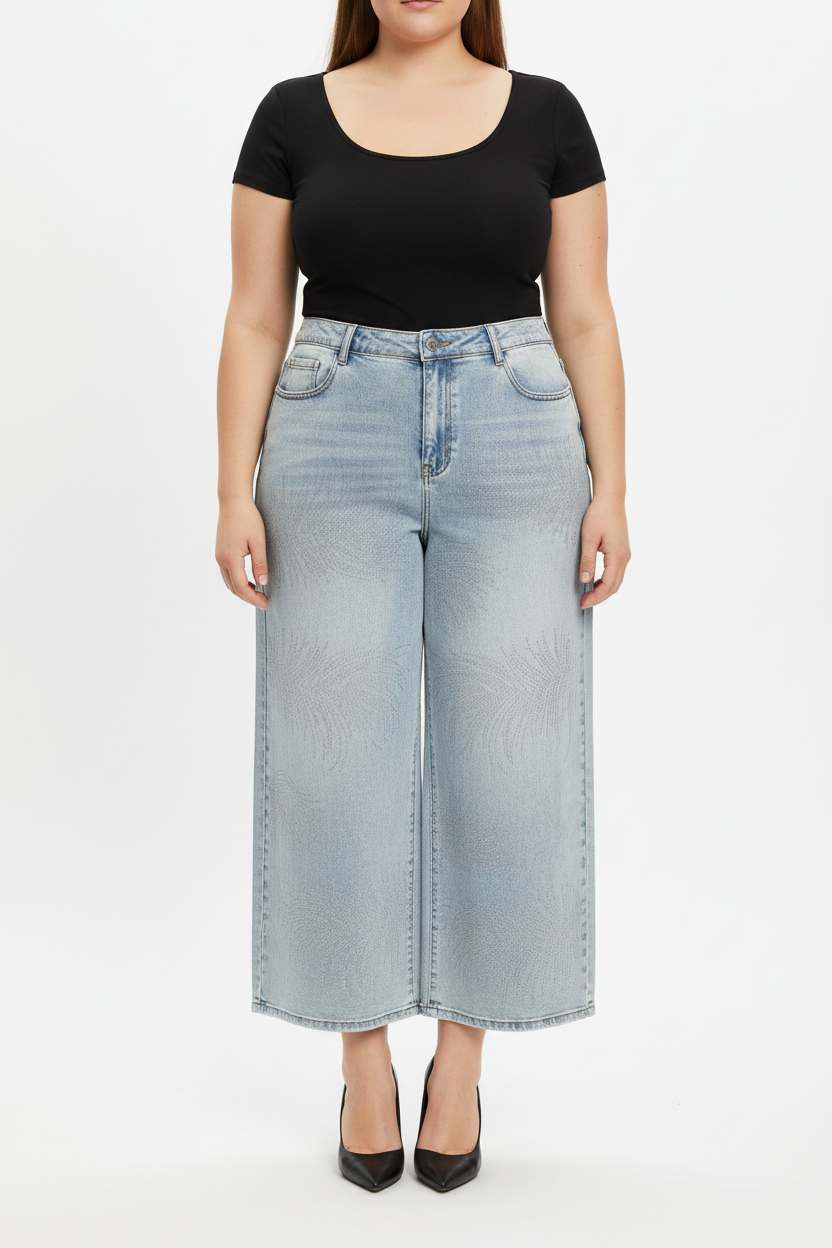 Wide-leg jeans with rhinestone design