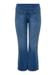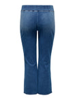 Curvy stretch jeans available in two colors, designed to flatter the figure. The elastic waistband ensures comfort and a perfect fit, while the slim leg gently flares from the knee down, offering style and freedom of movement. Ideal for those seeking a versatile and feminine piece to wear on any occasion.